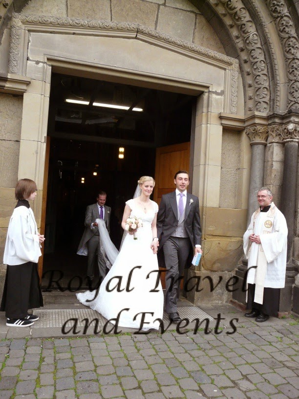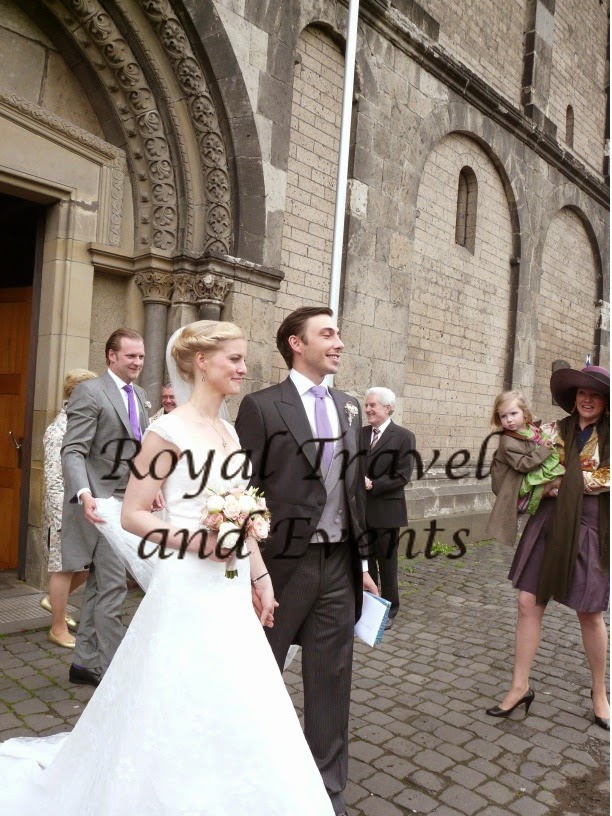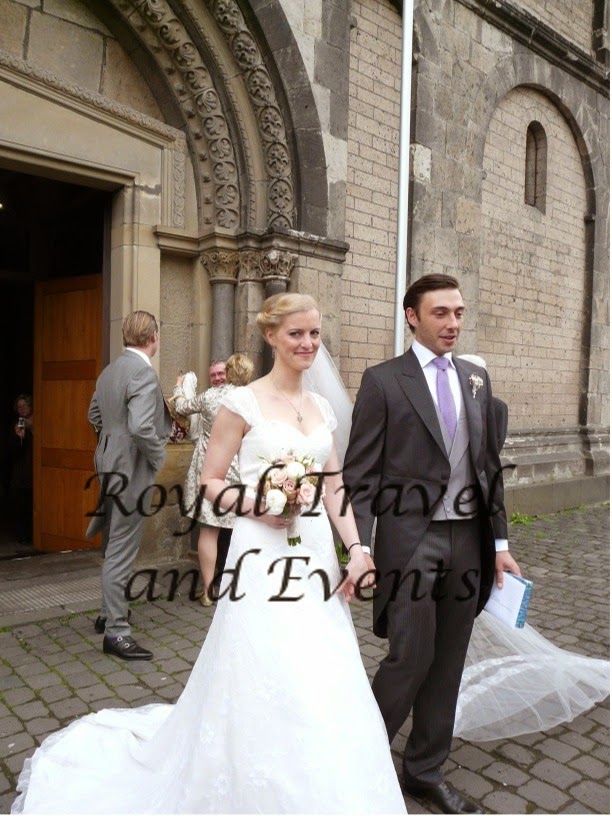 The Wedding of Princess Anna of Hohenzollern and Roman Goldschmith took place on 01.06.2013 at the maria Himmelfahrts Church at Andernach. Princess anna is a daughter of the late Prince Godehart of Hohenzollern and his wife Heide. Her great-grandfahter Prince Karl Anton of Hohenzollern bought in 1908 Namedy Castle in Andernach-Namedy which is still in Family posession. Therefore this is the seat of this branch of the Family. The Wedding on the Wedding Day was very cool and windy but luckily only very light rain.